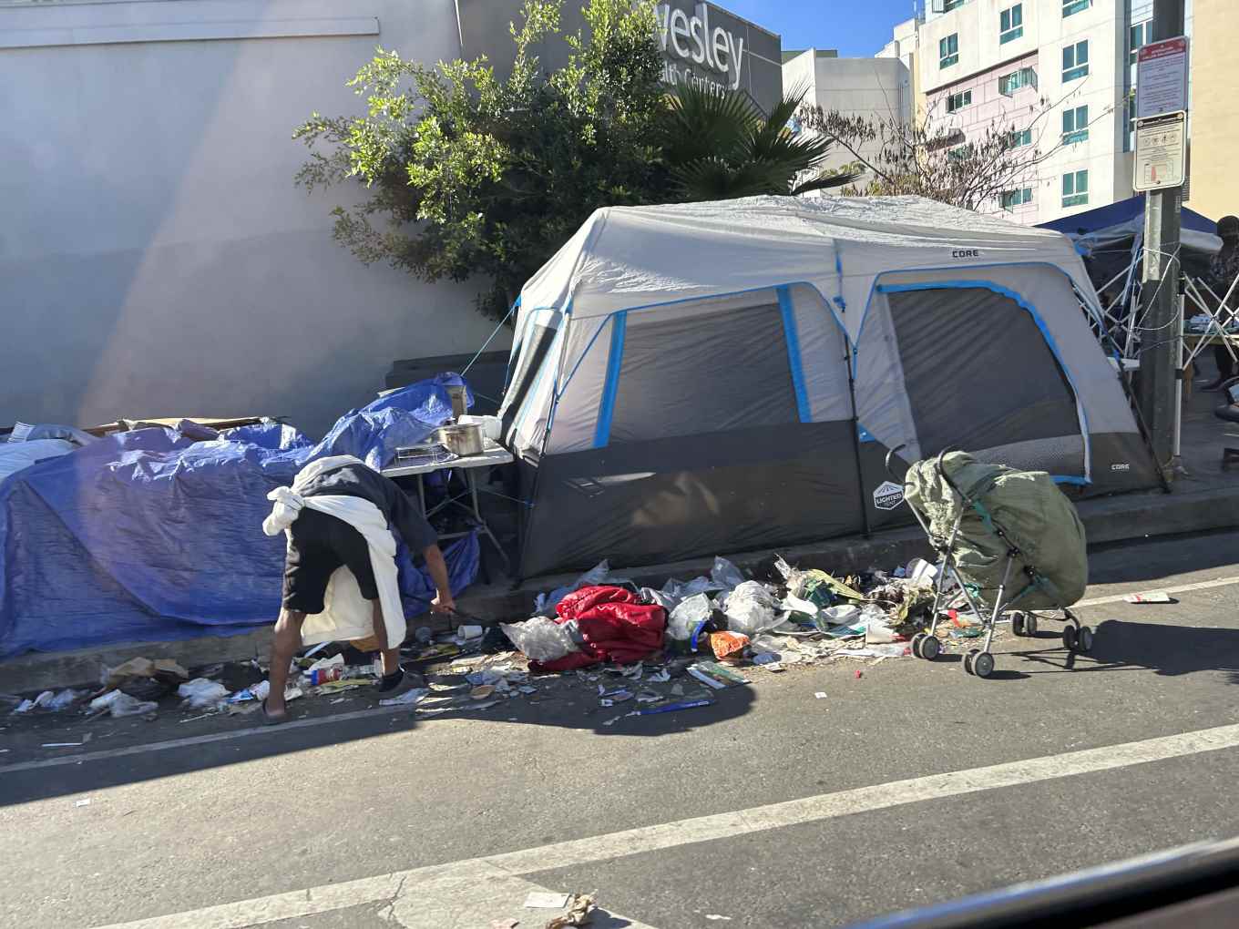 Xuất pháp lúc 8:00AM từ Huntington Beach, trời nắng khô với cái lạnh 8 độ C, sau một hành trình nhẹ nhàng, tụi mình tiến đến sát khu trung tâm của Los Angeless lúc 9:45AM, cảnh tượng đầu tiên đập vào mắt là homeless ở đây nhiều quá, sát ngay cái chợ hoa lớn và lâu đời nhất của Los Angeles, The Original Los Angeles Flower Market mà người ta thường gọi là Flower District có nghĩa là Khu chợ hoa.